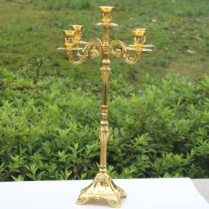 D’une hauteur imposante, ce grand chandelier sur pied va enchanter vos invités. Une fois que y vous aurez placé des bougies, ce porte-bougies deviendra la pièce centrale de votre décoration. Ce grand chandelier sur pied se prête parfaitement à la décoration de mariage ou de tout autre évènement spécial. Offrant 5 bras dont un plateau central en option, ce séduisant chandelier possède une structure métallique résistante. Le plateau central peut accueillir par exemple un bouquet de fleurs, libre imagination à vous ! Commandez aujourd’hui votre grand chandelier sur pied en cliquant sur Ajouter au panier.